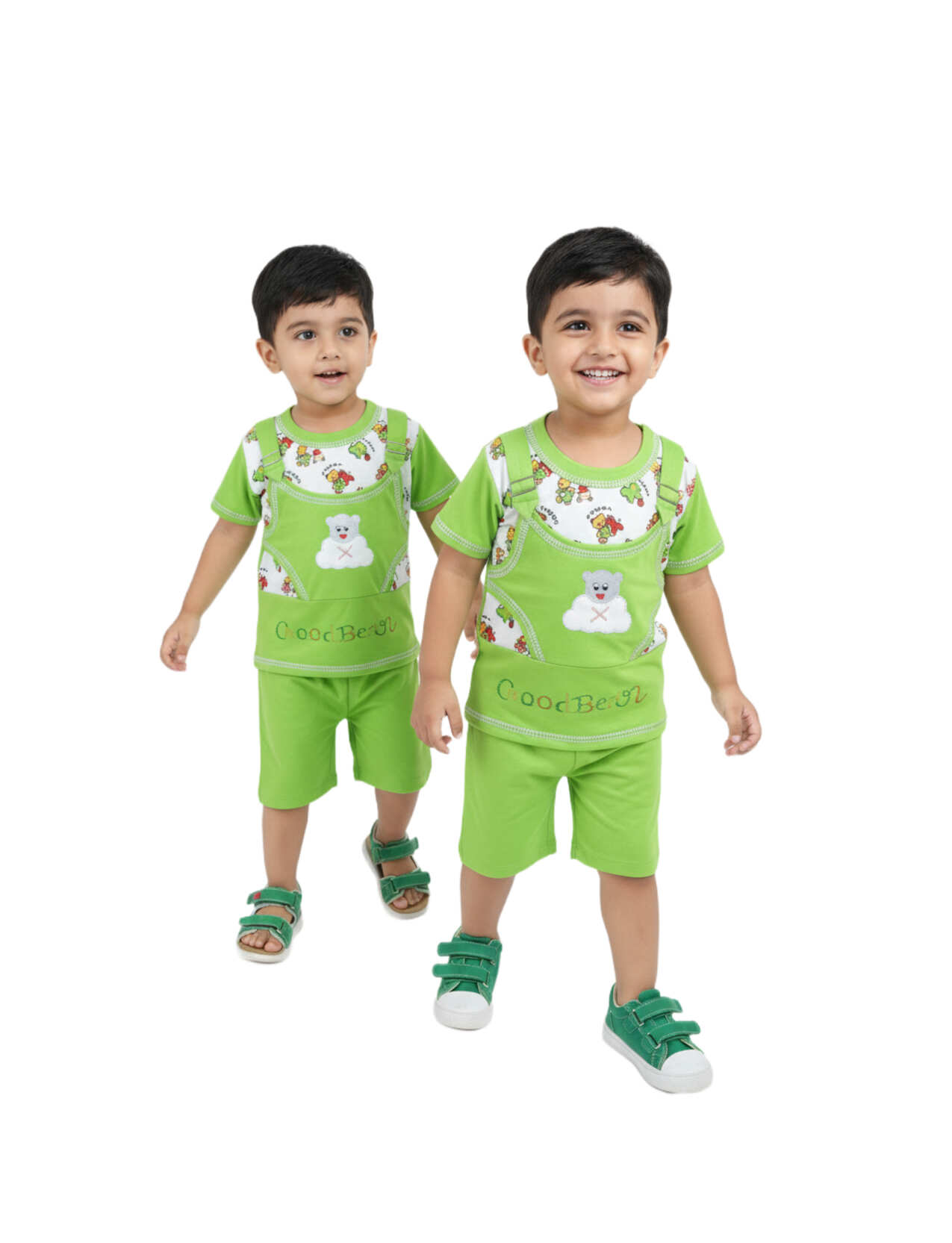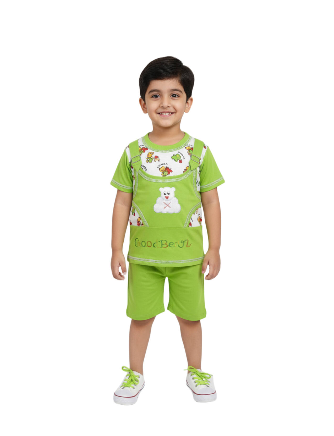 Dress your little one in comfort and cuteness with the Laku Boys Cotton T-Shirt and Shorts Set. Designed with a playful dungaree-style print and adorable bear graphic, this outfit gives a smart, trendy look while keeping your child relaxed all day long. Made from soft, breathable cotton fabric, the T-shirt feels gentle on delicate skin and allows easy movement during playtime. The matching shorts feature a comfortable fit, making this set perfect for summer wear, daily use, outings, or play sessions. The bright colour, fun print, and neat stitching make this outfit a favourite choice for parents who want both style and comfort for their kids. Easy to wear and easy to maintain, this clothing set is ideal for toddlers and young boys who love to stay active. A perfect pick for casual wear, day outings, play school, or gifting, this Laku boys outfit combines practicality with a cute, fashionable design your child will love.
