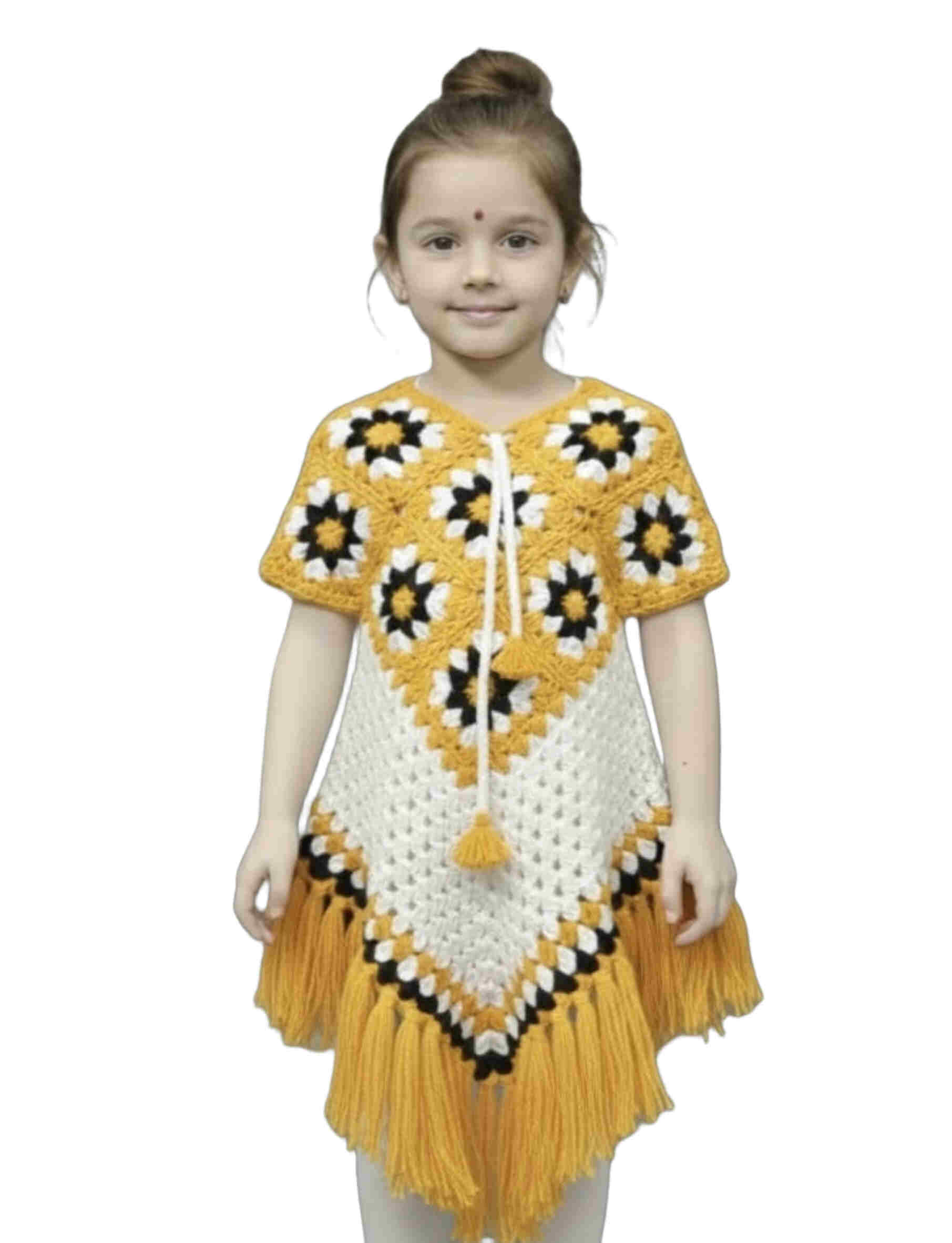 4 reviews for Laku Boys Girls Crochet Poncho Dress | Handcrafted Woolen Knitted Cape Dress for Kids | Floral Pattern Poncho with Tassel Fringe | Traditional & Casual Wear for Girls